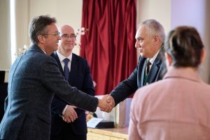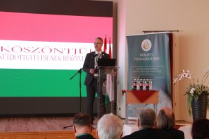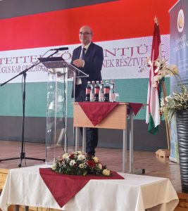Ünnepi beszédet tartott Prof. Dr. Hankó Balázs kulturális és innovációs miniszter, aki szívhez szólóan beszélt a tehetséggondozás kiemelkedő jelentőségéről, hangsúlyozva, hogy a fiatal generáció képességeinek kibontakoztatása nem csupán az egyéni fejlődés, hanem a közösség jövőjének megerősítése szempontjából is alapvető. Kiemelte a pedagógiai közösség szerepét, amely példaértékű elkötelezettséggel és szakmai hozzáértéssel segíti a fiatalok fejlődését, és biztosítja, hogy a tehetségek a lehető legjobban kibontakozhassanak.