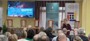 A konferencia első előadója, Dr. Vizi László Tamásné, a Nemzeti Pedagógus Kar országos elnökségi tagja a Kar tevékenységéről, fontosabb eredményeiről valamint a Kar 2026. évi választási folyamatáról, annak menetrendjéről és a tagság bevonásának fontosságáról tartott tájékoztatót. Kérte a jelenlévőket, hogy bíztassák kollégáikat szavazatuk leadására. Kiemelte az aktív részvétel fontosságát.