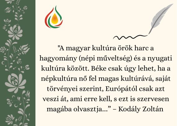 „A magyar kultúra örök harc a hagyomány (népi műveltség) és a nyugati kultúra között. Béke csak úgy lehet, ha a népkultúra nő fel magas kultúrává, saját törvényei szerint, Európától csak azt veszi át, ami erre kell, s ezt is szervesen magába olvasztja…” – Kodály Zoltán szavai ma is éppoly időszerűek, […]