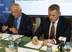 Dr. Gyuricza Csaba, a MATE rektora és Dr. Miseta Attila János, a PTE rektora látták el kézjegyükkel azt a megállapodást, ami megerősíti és megújítja a két felsőoktatási intézmény közötti több évtizedes kiváló szakmai munkát.